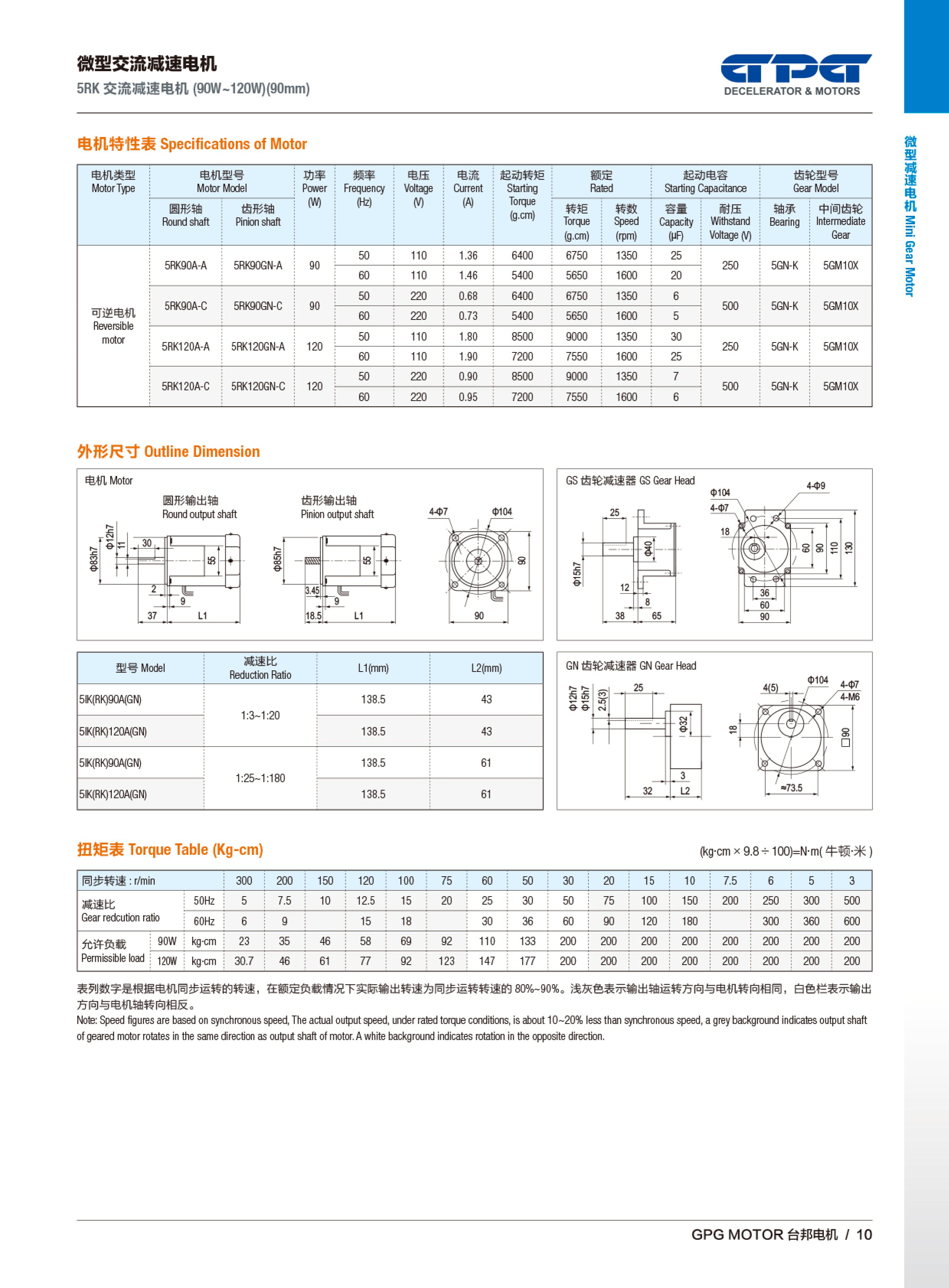 5IK/5RK 交流減速馬達(dá)(90W-120W)(90mm)