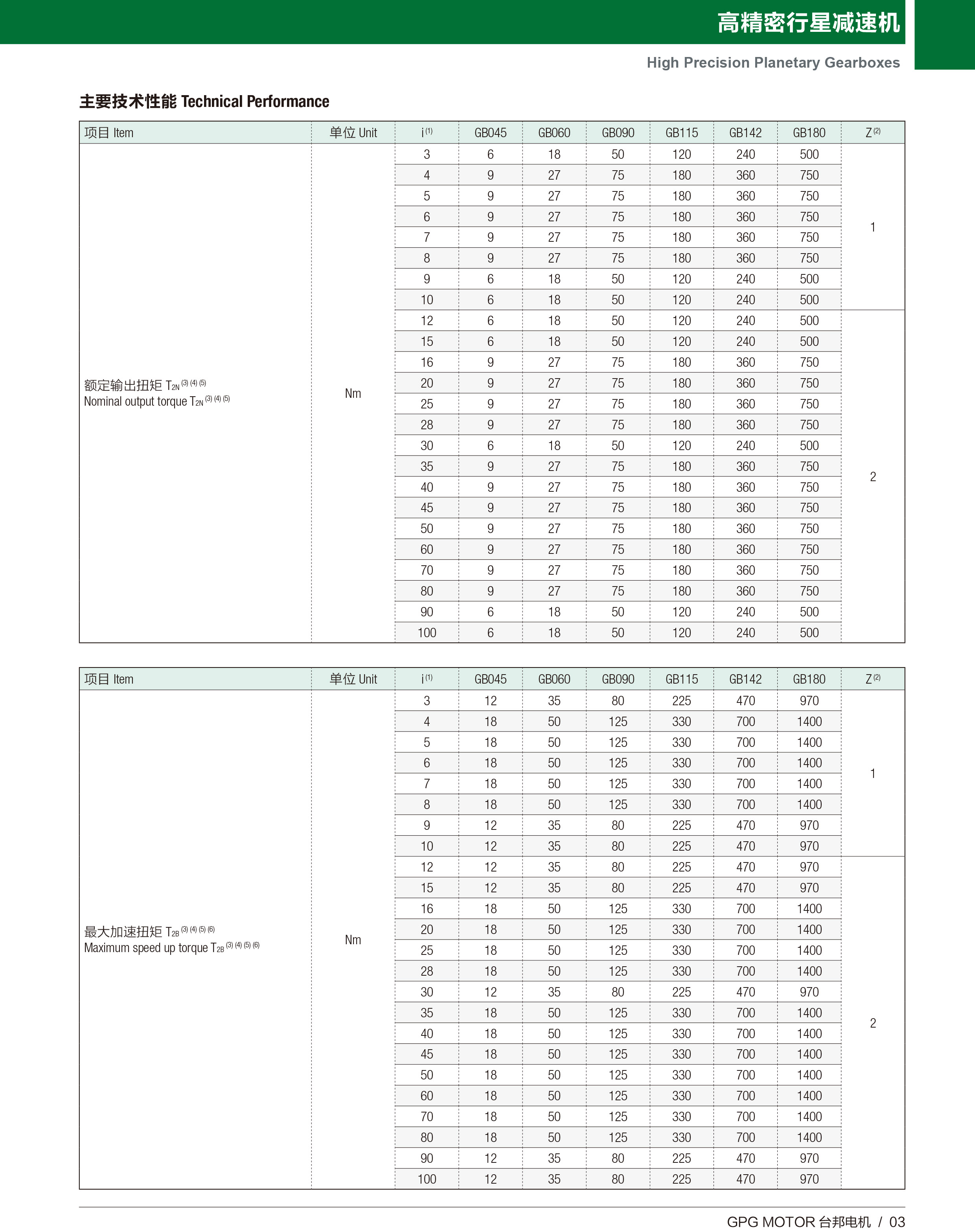 高精密行星 GB
