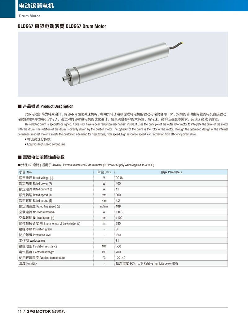 此款電動滾筒為特殊設(shè)計(jì),內(nèi)部不帶齒輪減速機(jī)構(gòu),利用外轉(zhuǎn)子電機(jī)原理