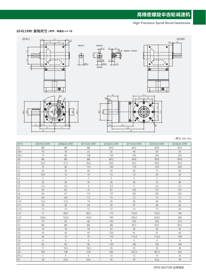 ●采用蝸線傘齒輪,經設計,接觸齒面負載均一、容許高扭矩輸出。