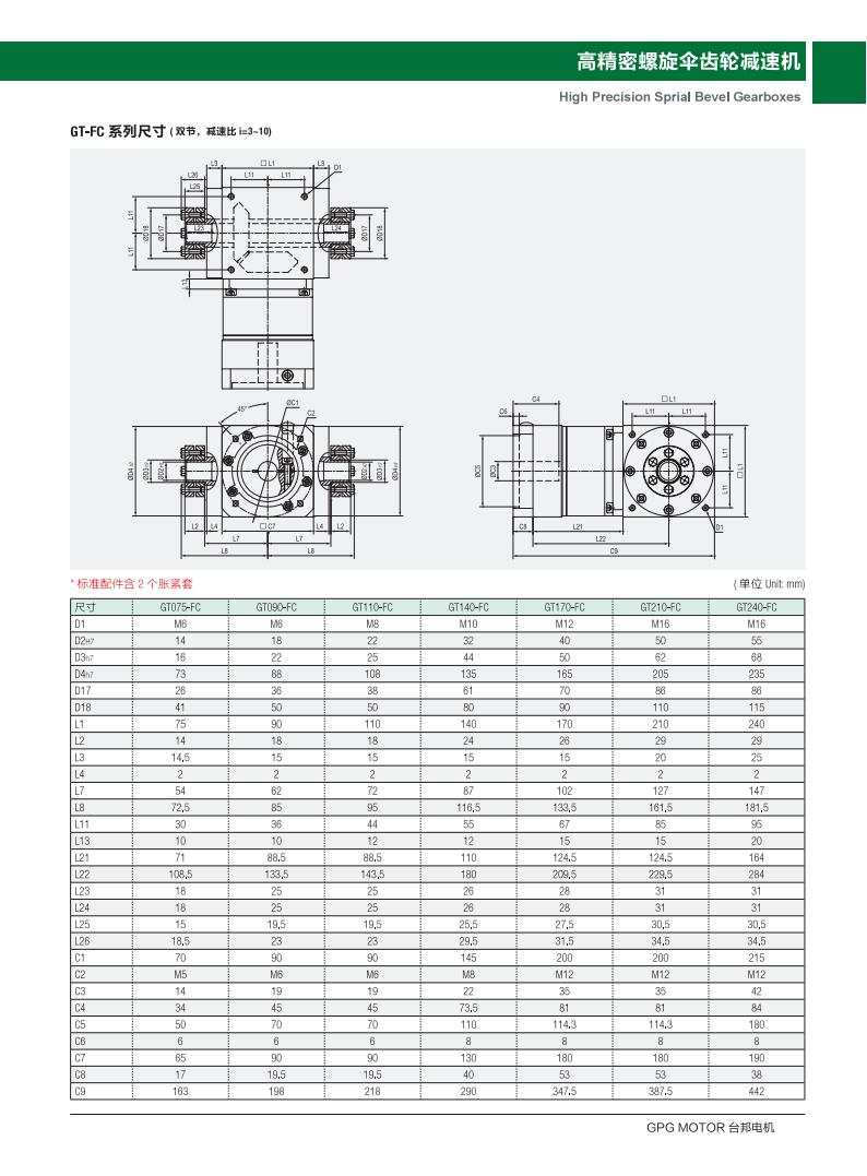 ●采用蝸線傘齒輪,經(jīng)設計,接觸齒面負載均一、容許高扭矩輸出。
